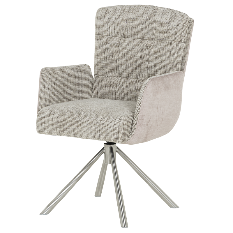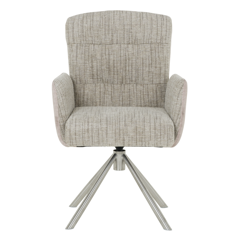 Трапезният стол KEILA предлага перфектен баланс между модерен дизайн и изключителна функционалност. Седалката, тапицирана с висококачествена дамаска и оборудвана с покет пружини, осигурява ненадминат комфорт, а подлакътниците допълват усещането за уют. Релакс облегалката с накланяне назад е ключова функция, която осигурява допълнително удобство за почивка и релаксация. Краката от неръждаема стомана не само придават елегантен външен вид, но и гарантират стабилност. KEILA е проектиран да издържа до 120 кг, което го прави здрав и надежден избор за всяка модерна трапезария, съчетавайки комфорт и стил. Пълна информация за размерите и характеристиките на модела ще намерите в таблицата в таб/поле „Техническа информация“.