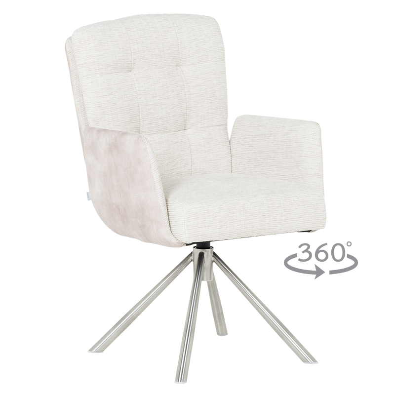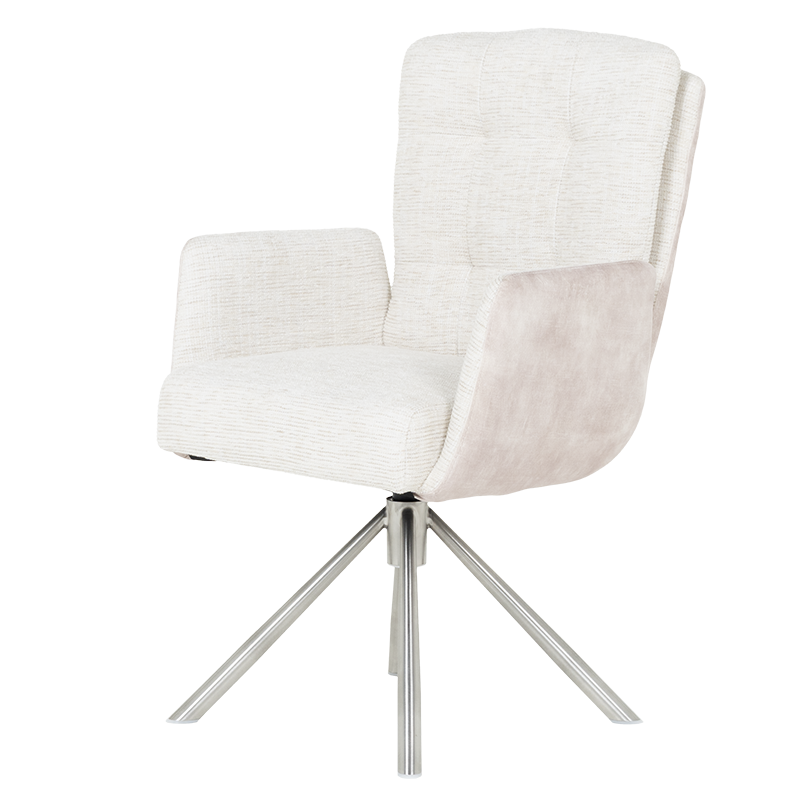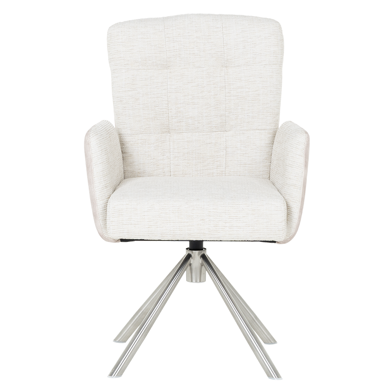 Трапезният стол KEILA предлага перфектен баланс между модерен дизайн и изключителна функционалност. Седалката, тапицирана с висококачествена дамаска и оборудвана с покет пружини, осигурява ненадминат комфорт, а подлакътниците допълват усещането за уют. Релакс облегалката с накланяне назад е ключова функция, която осигурява допълнително удобство за почивка и релаксация. Краката от неръждаема стомана не само придават елегантен външен вид, но и гарантират стабилност. KEILA е проектиран да издържа до 120 кг, което го прави здрав и надежден избор за всяка модерна трапезария, съчетавайки комфорт и стил. Пълна информация за размерите и характеристиките на модела ще намерите в таблицата в таб/поле „Техническа информация“.
