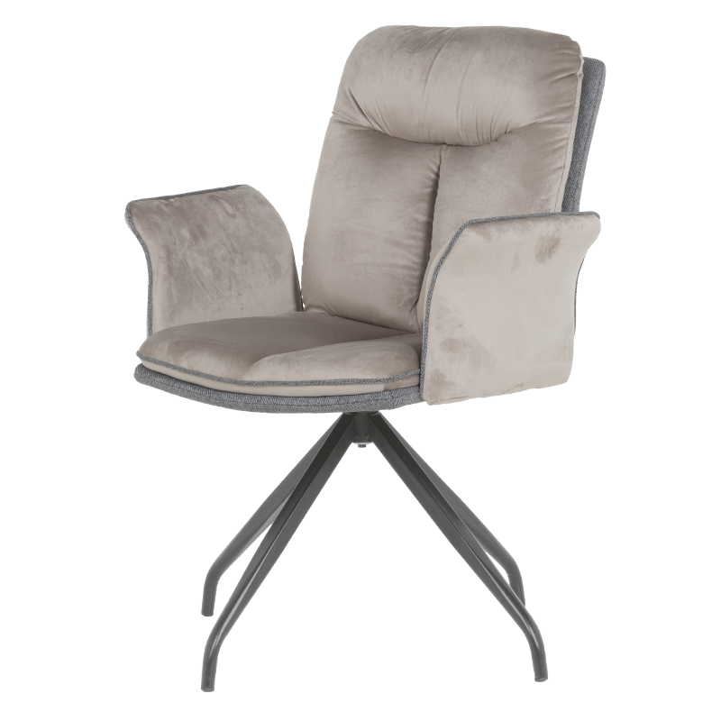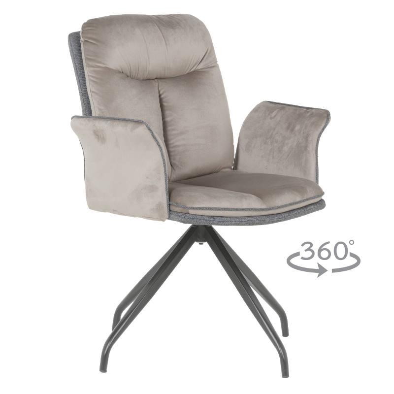 MARLOW 2 е трапезен стол с модерна визия. Той разполага с широки седалка и облегалка, тапицирани в мека дамаска, допълнени с възглавници за максимален комфорт. Подлакътниците повишават удобството на седящия. Основата е изработена от метал в елегантен сив цвят и предлага иновативна функция за 360° въртене. Пълна информация за размерите и характеристиките на модела ще намерите в таблицата в таб/поле „Техническа информация“.
