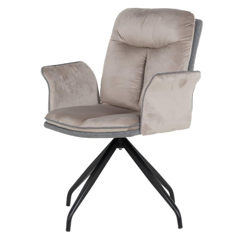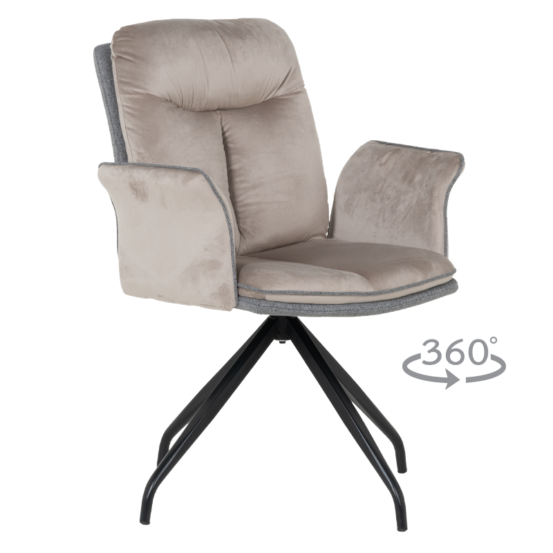MARLOW 1 е трапезен стол с модерна визия. Той разполага с широки седалка и облегалка, тапицирани в мека дамаска, допълнени с възглавници за максимален комфорт. Подлакътниците повишават удобството на седящия. Основата е изработена от метал в елегантен кремав цвят и предлага иновативна функция за 360° въртене. Пълна информация за размерите и характеристиките на модела ще намерите в таблицата в таб/поле „Техническа информация“.