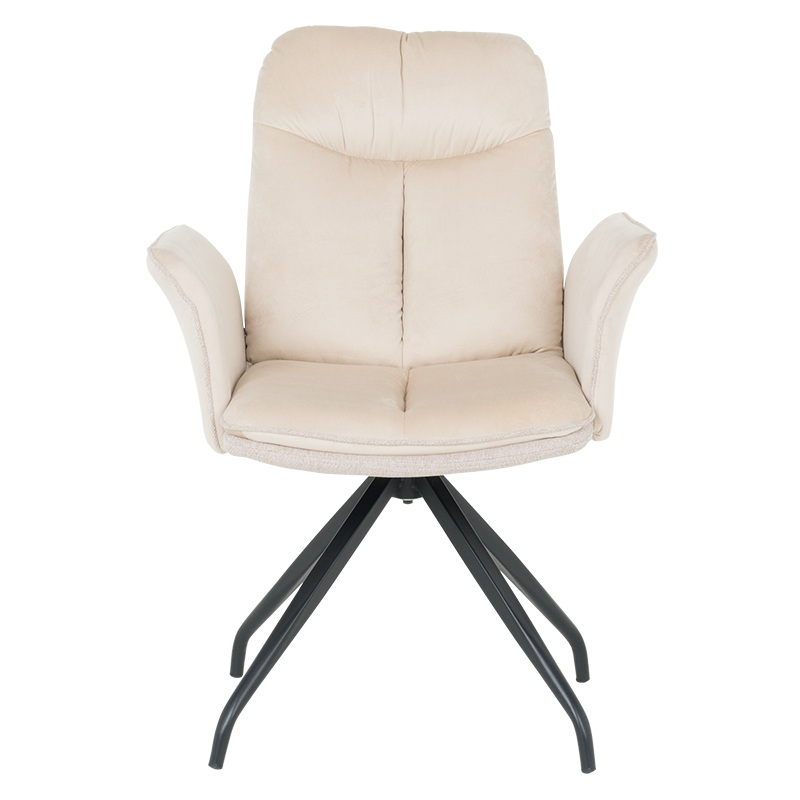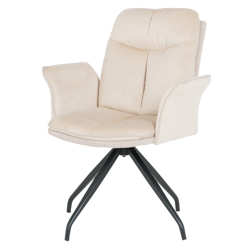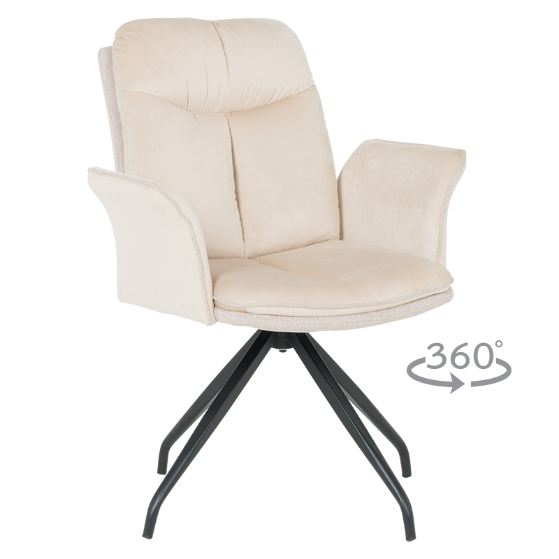 MARLOW 1 е трапезен стол с модерна визия. Той разполага с широки седалка и облегалка, тапицирани в мека дамаска, допълнени с възглавници за максимален комфорт. Подлакътниците повишават удобството на седящия. Основата е изработена от метал в елегантен кремав цвят и предлага иновативна функция за 360° въртене. Пълна информация за размерите и характеристиките на модела ще намерите в таблицата в таб/поле „Техническа информация“.