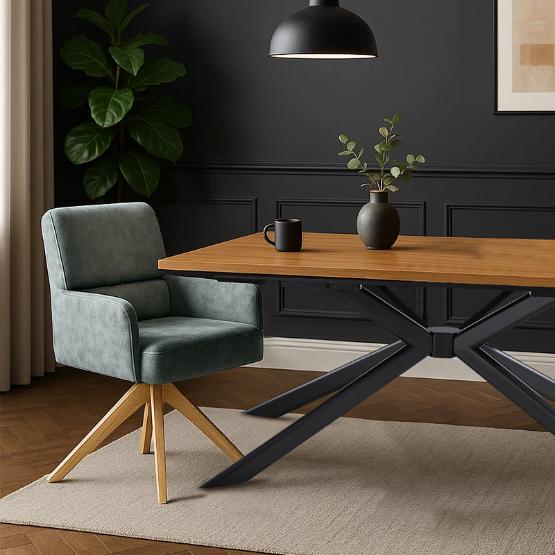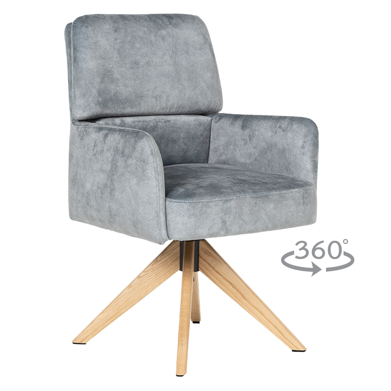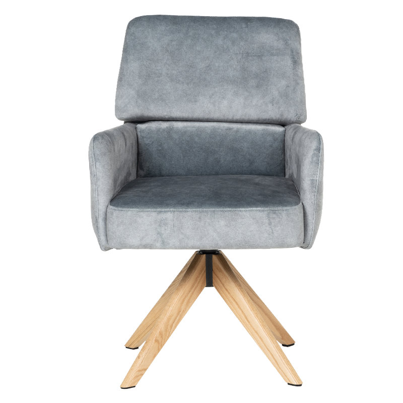 Трапезният стол Narva W впечатлява с изискан модерен облик и отлично ниво на комфорт. Седалката е тапицирана с висококачествена дамаска и разполага с вградени покет пружини, които осигуряват мекота и стабилна опора при седене. Подлакътниците допринасят за уют и удобство, докато функцията за 360° завъртане с автоматично връщане добавя практичност при използване в ежедневна обстановка. Фините дървени крака от висококачествен Червен дъб придават лек и елегантен акцент, а люлеещият механизъм е стилна и неочаквана екстра, която подсилва усещането за релакс. Максималната товароносимост от 120 кг гарантира здравина и надеждност, което прави Narva 5 отличен избор за модерна трапезария, където комфортът е на първо място.Пълна информация за размерите и характеристиките на модела ще намерите в таблицата в таб/поле „Техническа информация“.