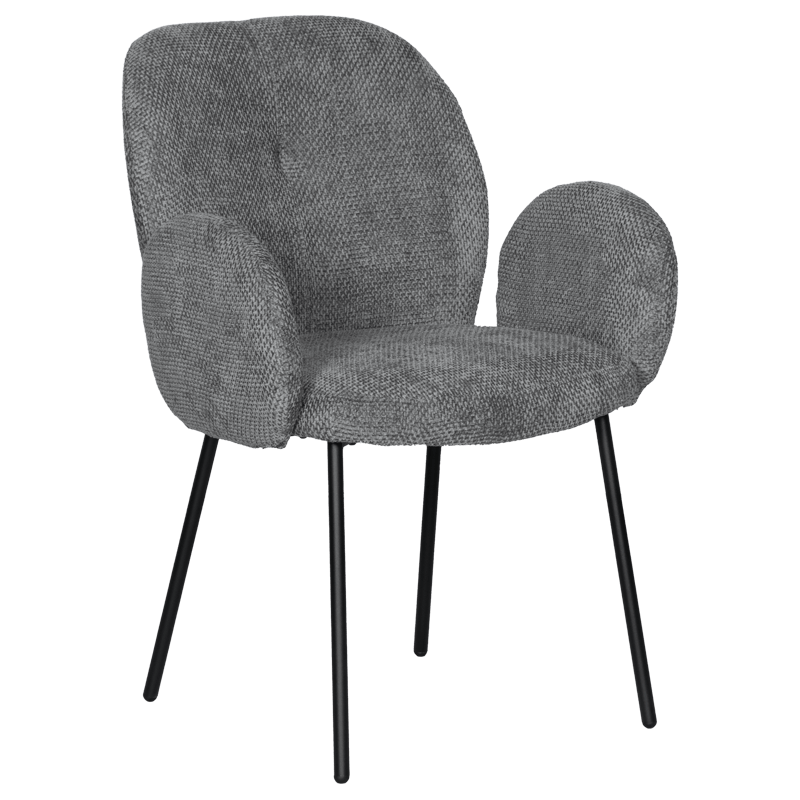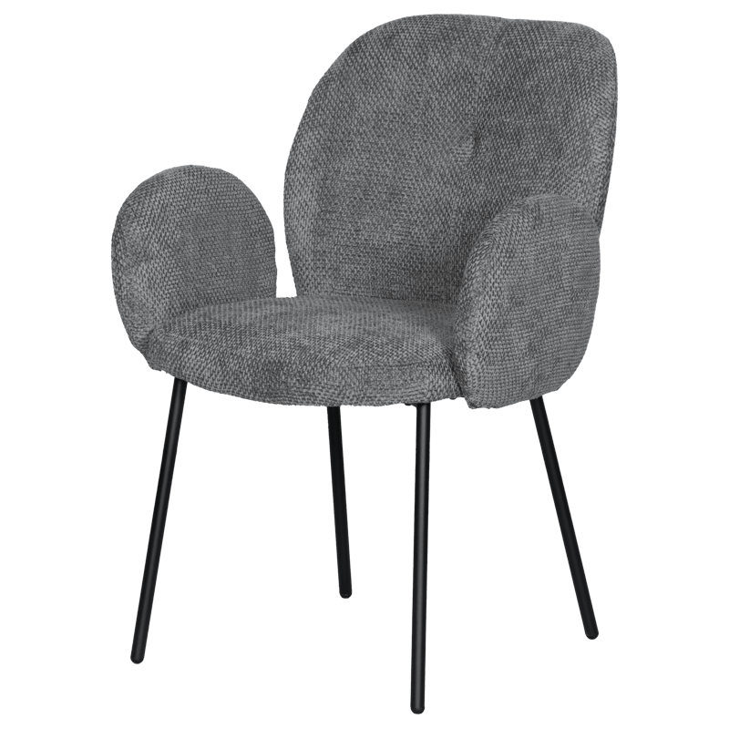Трапезният стол OLIVER впечатлява с елегантна визия и комфорт. Облечен във висококачествена дамаска с едра текстура, той се откроява с подлакътници в интересна полукръгла форма, които придават стил и изисканост. Здравите крака от праховобоядисан метал осигуряват стабилност и устойчивост. OLIVER е съвременно решение за трапезарии с характер. Пълна информация за размерите и характеристиките на модела ще намерите в таблицата в таб/поле ‘Техническа информация’.