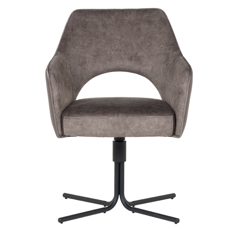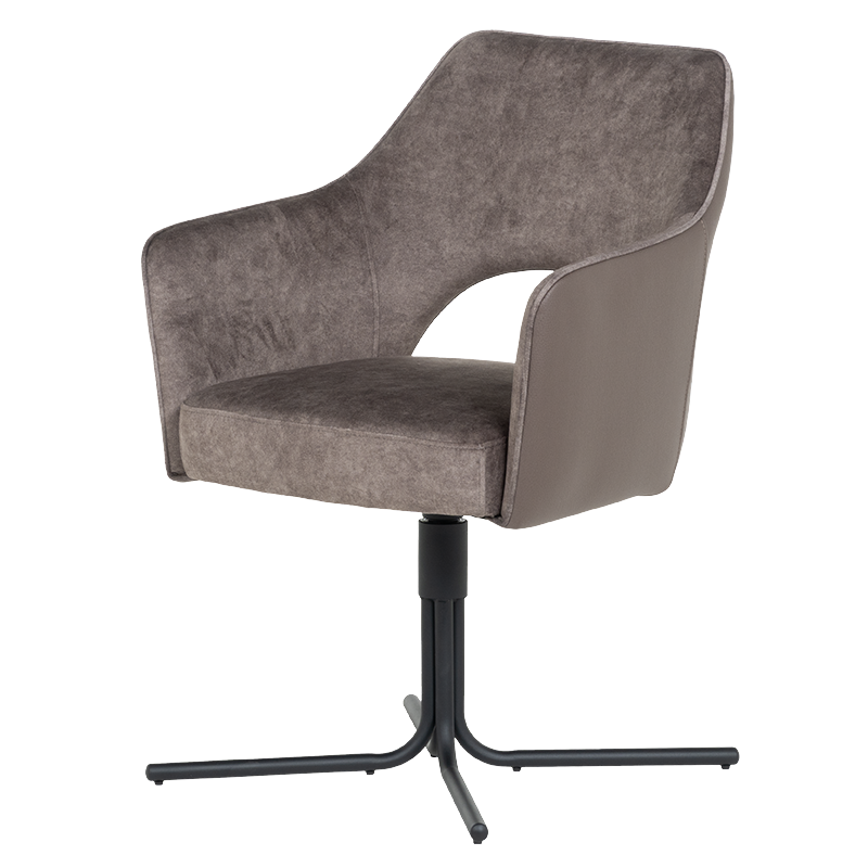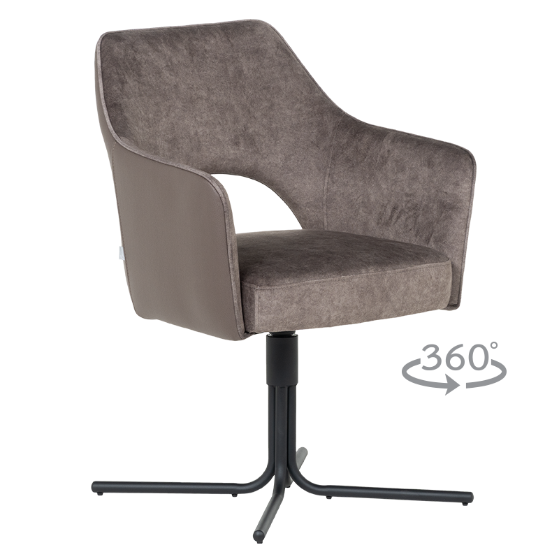Трапезният стол PARNU съчетава елегантен модерен дизайн с отлична функционалност. Меката седалка е тапицирана с висококачествена дамаска и разполага с покет пружини за допълнителен комфорт, а извитите подлакътници допринасят за усещането за уют и подкрепа. Столът е снабден с механизъм за плавно завъртане на 360°, което улеснява движението и комуникацията около масата. Металната кръстата основа осигурява стабилност и издръжливост до 120 кг. PARNU е стилно решение за всяка съвременна трапезария, комбиниращо комфорт, практичност и изчистена визия. Пълна информация за размерите и характеристиките на модела ще намерите в таблицата в таб/поле ‘Техническа информация’.