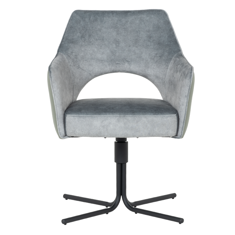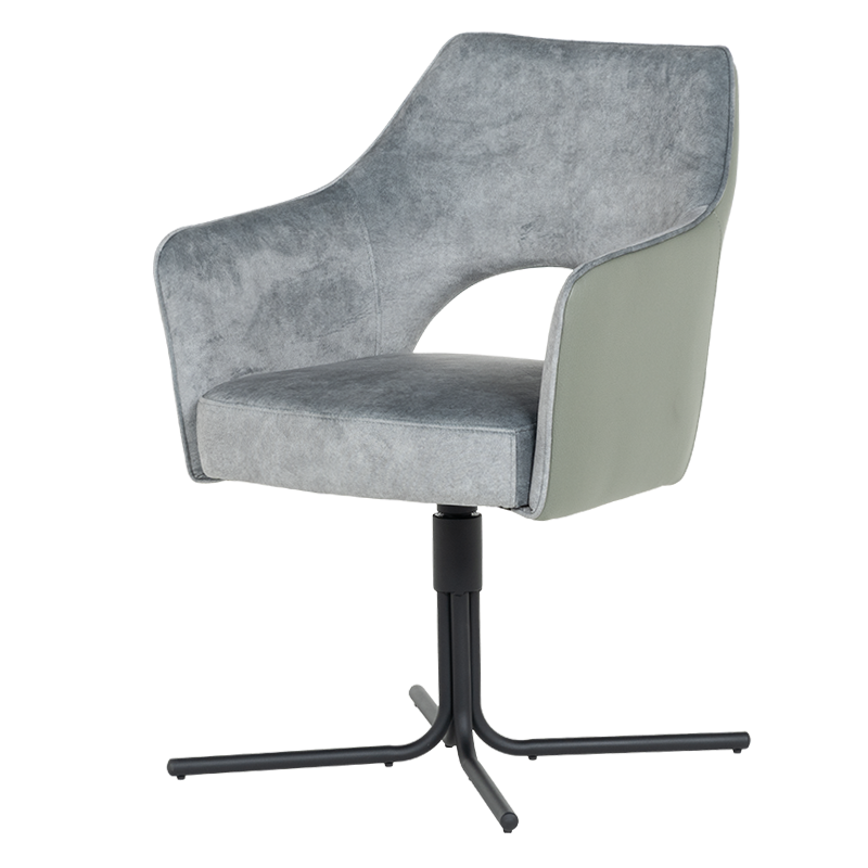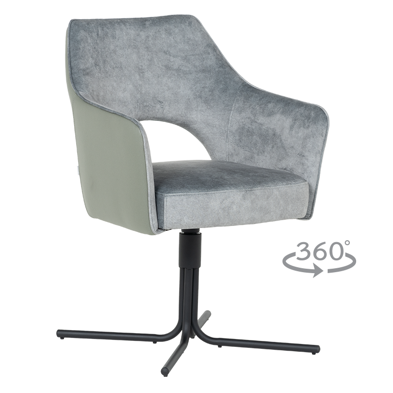 Трапезният стол PARNU съчетава елегантен модерен дизайн с отлична функционалност. Меката седалка е тапицирана с висококачествена дамаска и разполага с покет пружини за допълнителен комфорт, а извитите подлакътници допринасят за усещането за уют и подкрепа. Столът е снабден с механизъм за плавно завъртане на 360°, което улеснява движението и комуникацията около масата. Металната кръстата основа осигурява стабилност и издръжливост до 120 кг. PARNU е стилно решение за всяка съвременна трапезария, комбиниращо комфорт, практичност и изчистена визия. Пълна информация за размерите и характеристиките на модела ще намерите в таблицата в таб/поле ‘Техническа информация’.