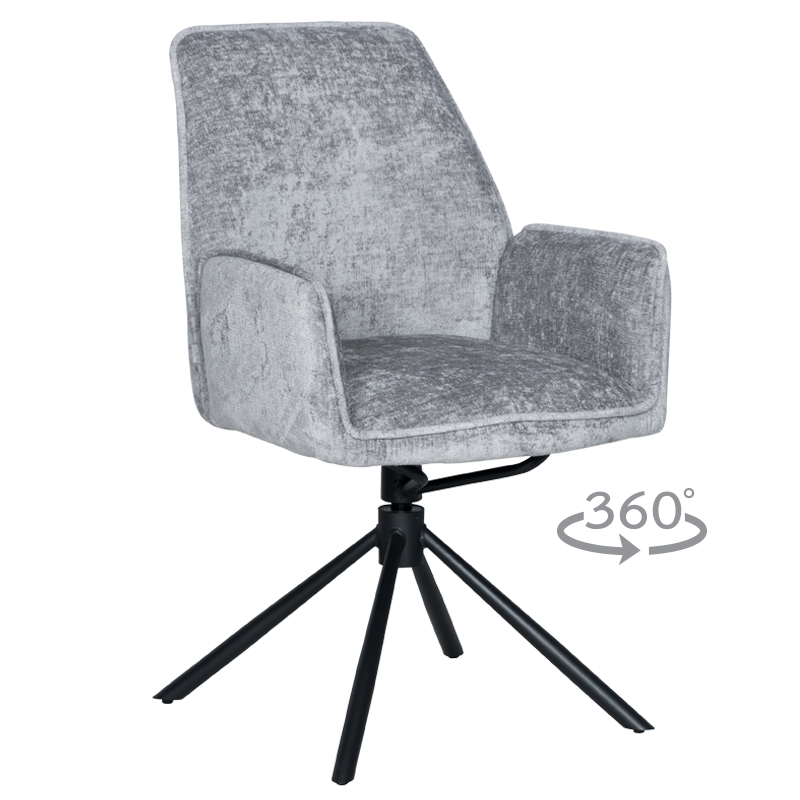 PRATO съчетава модерен дизайн с изключително удобство. Ергономичната седалка с вградени покет пружини и релакс функция предлага комфорт дори при продължително използване. Меката дамаска придава усещане за уют, а металната основа осигурява стабилност. Благодарение на 360-градусовото въртене с автоматично връщане в изходна позиция, PRATO е едновременно функционален и стилен избор за трапезарията. Пълна информация за размерите и характеристиките на модела ще намерите в таблицата в таб/поле „Техническа информация“.