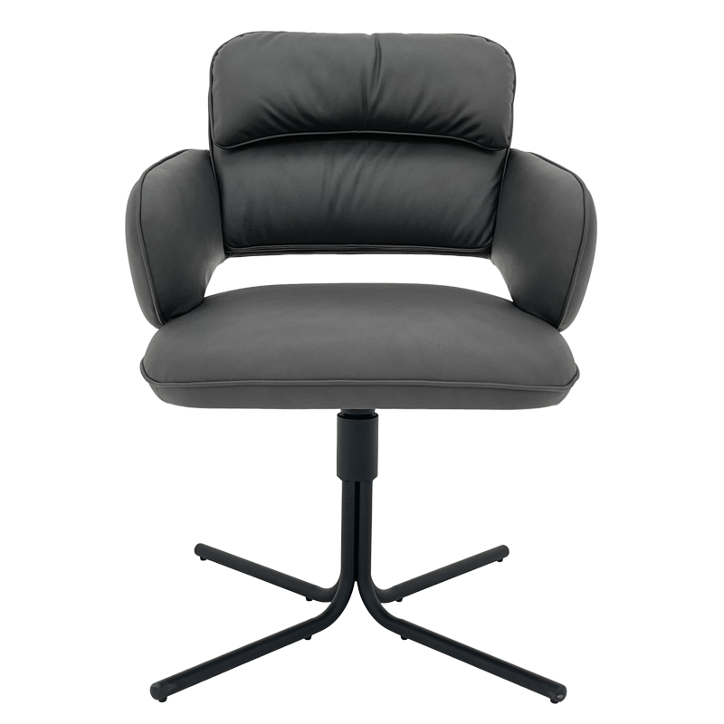 Трапезният стол RAKVERE впечатлява с модерен силует и изтънчен комфорт. Меката дамаска прегръща тялото, а вградените покет пружини осигуряват приятно, пружиниращо усещане при сядане. Люлеещата функция с елегантно автоматично връщане и 360° въртене добавят лекота и свобода на движение. Завършен с фина основа от праховобоядисан метал в черен мат, моделът носи неподражаемо усещане за стил и съвременна естетика. Пълна информация за размерите и характеристиките на модела ще намерите в таблицата в таб/поле „Техническа информация“.