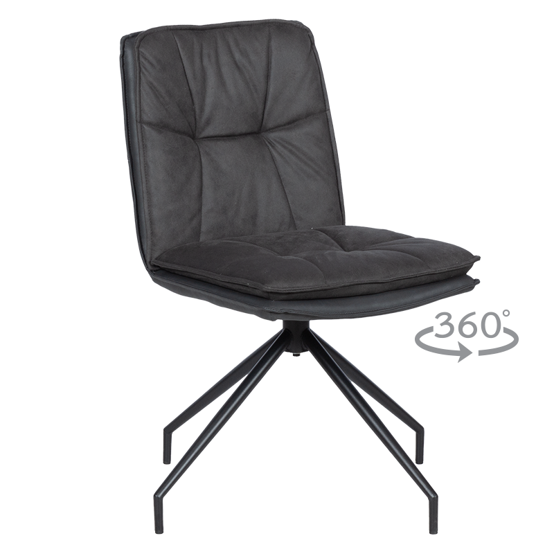 Трапезният стол RAMSEY е удобен модел, с изключително стилна визия и елегантен дизайн. За изработката му е използвана дамаска, еко кожа и праховобоядисан метал за краката. Освен това, за да бъде още по-удобен, моделът притежава и функция за въртене на 360°. Пълна информация за размерите и характеристиките на модела ще намерите в таблицата в таб/поле „Техническа информация“.
