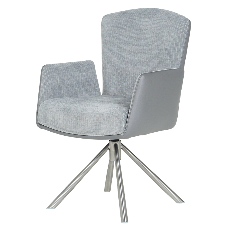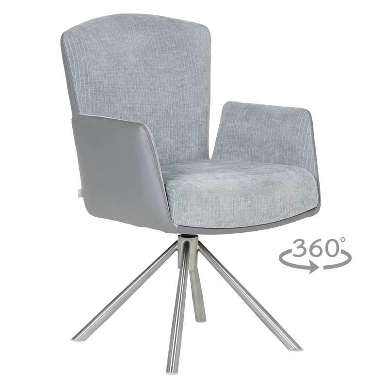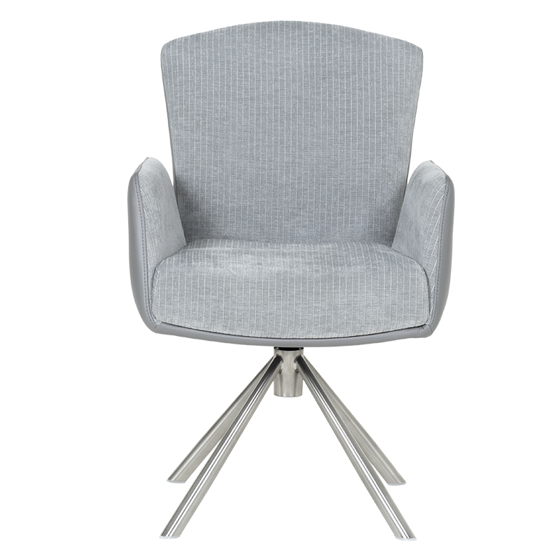 Трапезният стол SINDI впечатлява с модерен дизайн и функционалност, създавайки идеалния баланс между комфорт и стил. Тапицираната седалка с висококачествена дамаска и покет пружини осигурява максимален комфорт, а удобните подлакътници добавят усещане за уют. Една от ключовите функции на SINDI е релакс облегалката с възможност за накланяне назад, която предоставя допълнително удобство и релаксация. Масивната основа от неръждаема стомана придава стабилност и елегантен външен вид. Столът е здрав и издържа до 120 кг, което го прави дълготраен и надежден избор за всяка съвременна трапезария, където се цени както комфортът, така и изтънченият дизайн. Пълна информация за размерите и характеристиките на модела ще намерите в таблицата в таб/поле „Техническа информация“.