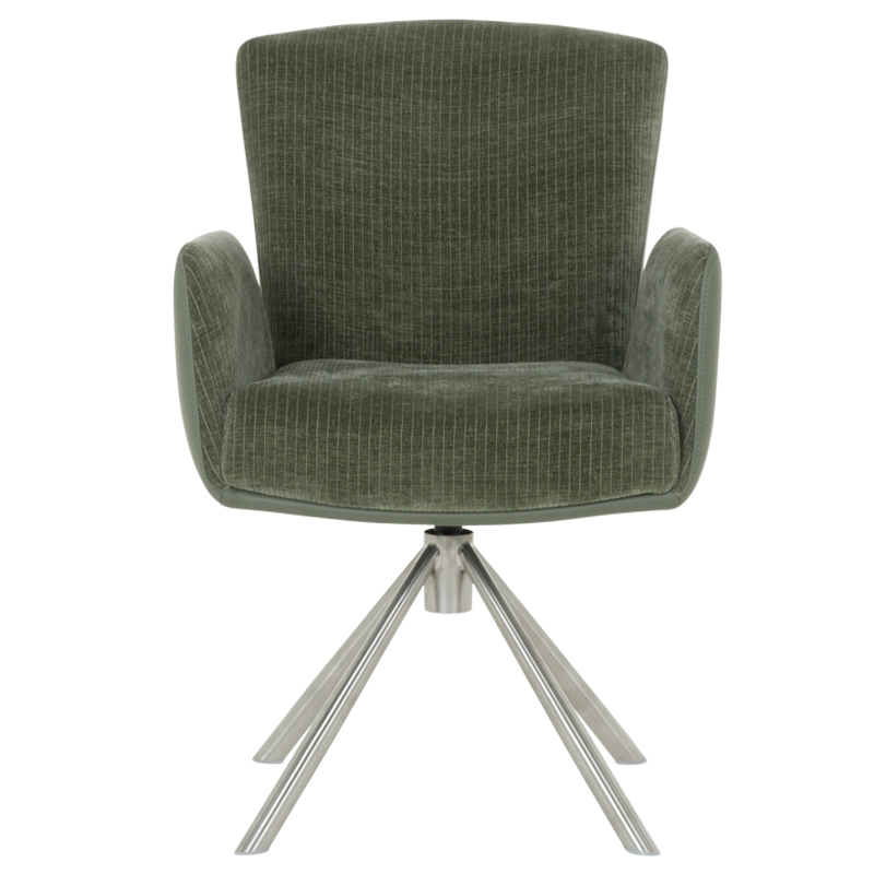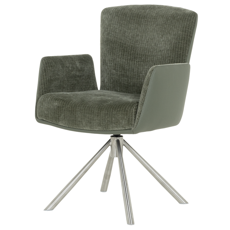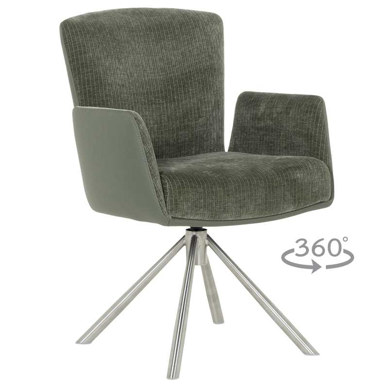 Трапезният стол SINDI впечатлява с модерен дизайн и функционалност, създавайки идеалния баланс между комфорт и стил. Тапицираната седалка с висококачествена дамаска и покет пружини осигурява максимален комфорт, а удобните подлакътници добавят усещане за уют. Една от ключовите функции на SINDI е релакс облегалката с възможност за накланяне назад, която предоставя допълнително удобство и релаксация. Масивната основа от неръждаема стомана придава стабилност и елегантен външен вид. Столът е здрав и издържа до 120 кг, което го прави дълготраен и надежден избор за всяка съвременна трапезария, където се цени както комфортът, така и изтънченият дизайн. Пълна информация за размерите и характеристиките на модела ще намерите в таблицата в таб/поле „Техническа информация“.