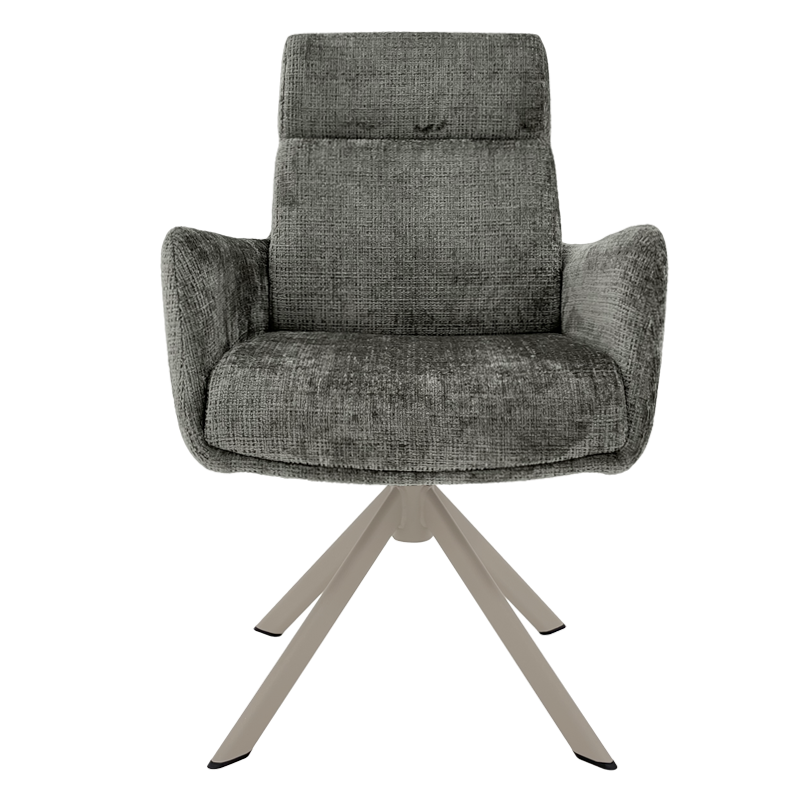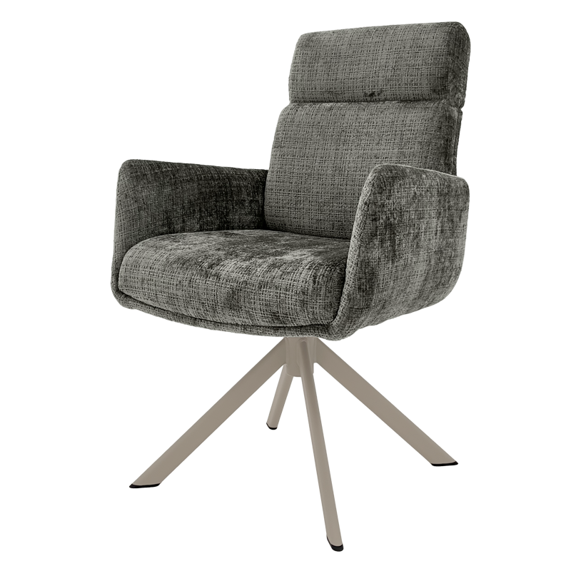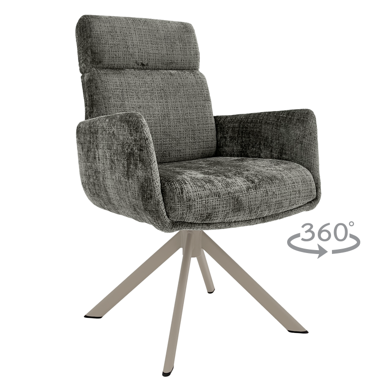 Трапезен стол TORVA е олицетворение на модерния комфорт, предлагайки елегантен дизайн с удобни подлакътници и мека тапицерия от издръжлива дамаска. За максимално удобство при продължително седене, седалката е подсилена със система от покет пружини и разполага с функция за люлеене. Здравата основа от праховобоядисан метал позволява пълно въртене на 360° и включва механизъм за автоматично връщане в изходна позиция. Този стол е създаден да издържи на натоварване до 120 кг, което го прави отличен и стабилен избор за всяка съвременна трапезария. Пълна информация за размерите и характеристиките на модела ще намерите в таблицата в таб/поле „Техническа информация“.
