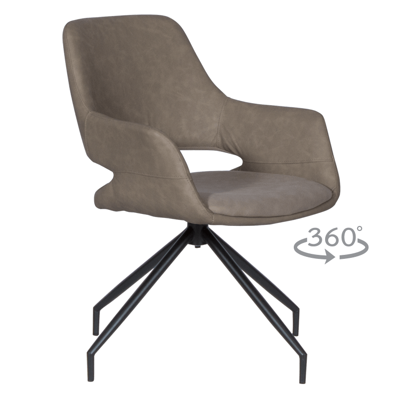 TOTNES -1 е трапезен стол с модерен дизайн, нестандартни крака и функция за въртене на седалката на 360°. Изработен е от висококачествена дамаска и праховобоядисан метал. Пълна информация за размерите и характеристиките на модела ще намерите в таблицата в таб/поле „Техническа информация“.