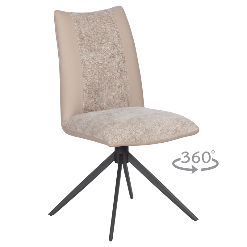TULSA е трапезен стол с удобни седалка и облегалка, изработени от висококачествени дамаска и силиконова кожа, както и стабилни крака от праховобоядисан метал. Моделът разполага с функция за 360° въртене на основата и връщането ѝ в изходяща позиция. Със своя модерен дизайн, той е подходящ както за трапезарията у дома, така и за интериора на заведения. Пълна информация за размерите и характеристиките на модела ще намерите в таблицата в таб/поле „Техническа информация“.