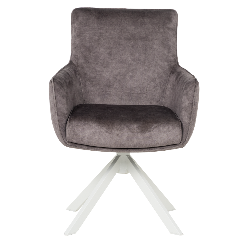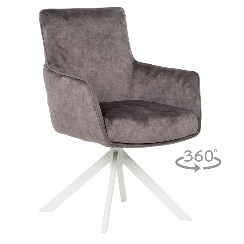 Стилният трапезен стол VALGA 6 впечатлява със своя модерен дизайн и изключителен комфорт. Седалката е тапицирана с висококачествена дамаска и оборудвана с покет пружини, осигуряващи удобство при продължителна употреба. Подлакътниците добавят допълнително усещане за уют, правейки стола подходящ както за хранене, така и за почивка. Уникалната функция за въртене на 360° с автоматично връщане в изходна позиция го прави изключително практичен, а масивната основа от праховобоядисан метал в кашмирено бяло добавя нотка на елегантност. Люлеещият механизъм създава релаксиращо изживяване, което прави стол VALGA 6 идеален избор за модерната трапезария