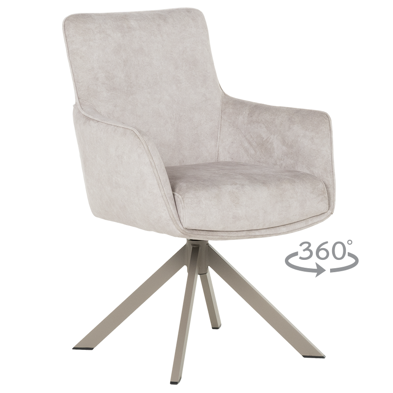 Трапезният стол VALGA впечатлява със своя съвременен дизайн и функционалност, създавайки идеалния баланс между стил и комфорт. Седалката е тапицирана с висококачествена дамаска и е оборудвана с покет пружини, които осигуряват удобство за продължителна употреба. Подлакътниците добавят допълнително усещане за уют, правейки стола подходящ както за хранене, така и за почивка. Уникалната функция за въртене на 360° с автоматично връщане в изходна позиция прави стола изключително практичен, а масивната основа от праховобоядисан метал с перлен блясък добавя нотка на елегантност. Люлеещият механизъм създава релаксиращо изживяване, което прави стол VALGA идеален избор за модерната трапезария. Пълна информация за размерите и характеристиките на модела ще намерите в таблицата в таб/поле „Техническа информация“.