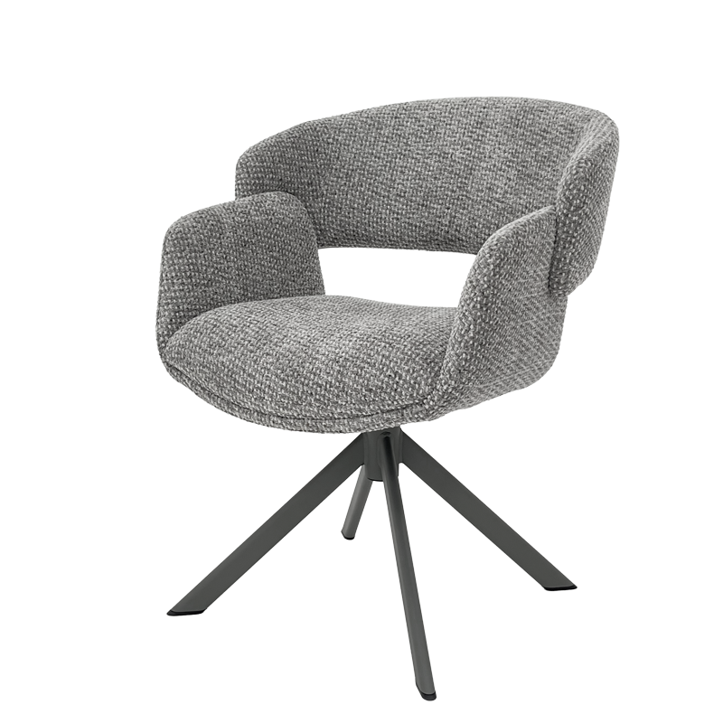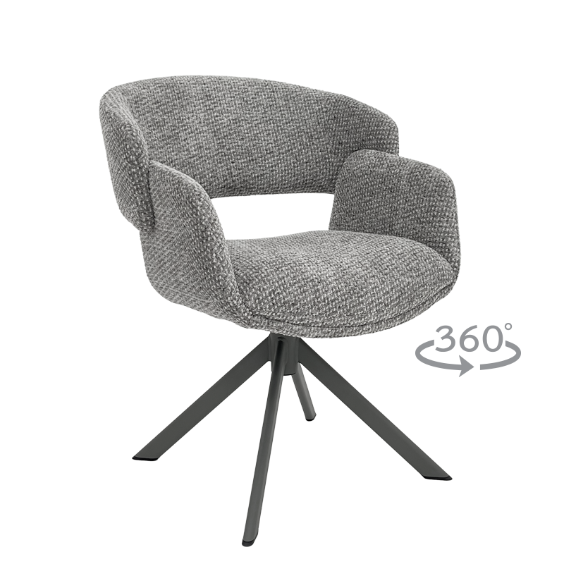 Трапезен стол VORU 8 – срещата на модерния дизайн и пълната свобода на движение. Модел, който внася динамика и уют във всяка трапезария. Неговият елегантен силует е облечен във висококачествена дамаска, а стабилната му основа от праховобоядисан метал подчертава съвременния му характер. Това, което прави VORU 8 наистина специален, е идеалната комбинация от елементи: вградените покет пружини в седалката осигуряват мека и дълготрайна опора, а столът допълнително предлага 360° въртене, лека люлееща функция и автоматично връщане в перфектната изходна позиция. Всичко това превръща всяко хранене или разговор в релаксиращо преживяване. VORU 8 е създаден да бъде не просто мебел, а централен елемент на комфорта във вашия дом. Пълна информация за размерите и характеристиките на модела ще намерите в таблицата в таб/поле „Техническа информация“.
