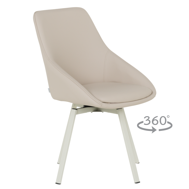 Трапезният стол WIGAN впечатлява със своя стилен и изчистен дизайн, съчетан с практичната функция за въртене на 360°. Изработен е от висококачествена силиконова кожа, която не само придава луксозно усещане, но и е изключително здрава и лесна за поддръжка. Металните крака с прахово боядисване осигуряват допълнителна стабилност и дълготрайност, което прави WIGAN перфектен избор за съвременния дом. Пълна информация за размерите и характеристиките на модела ще намерите в таблицата в таб/поле „Техническа информация“.