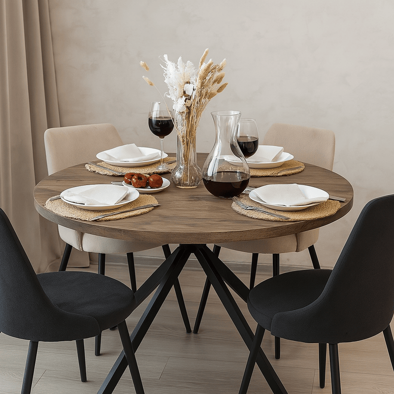 Трапезна маса Ludvika впечатлява със своята солидна конструкция и стилна визия. Кръглият плот с диаметър 120 см е изработен от MDF с дебелина 40 мм, който съчетава естетика и устойчивост. Металната основа с прахово боядисано покритие осигурява стабилност и модерен завършек. Подходяща е както за компактни, така и за по-просторни интериори. Пълна информация за размерите и характеристиките на модела ще намерите в таблицата в таб/поле „Техническа информация“.