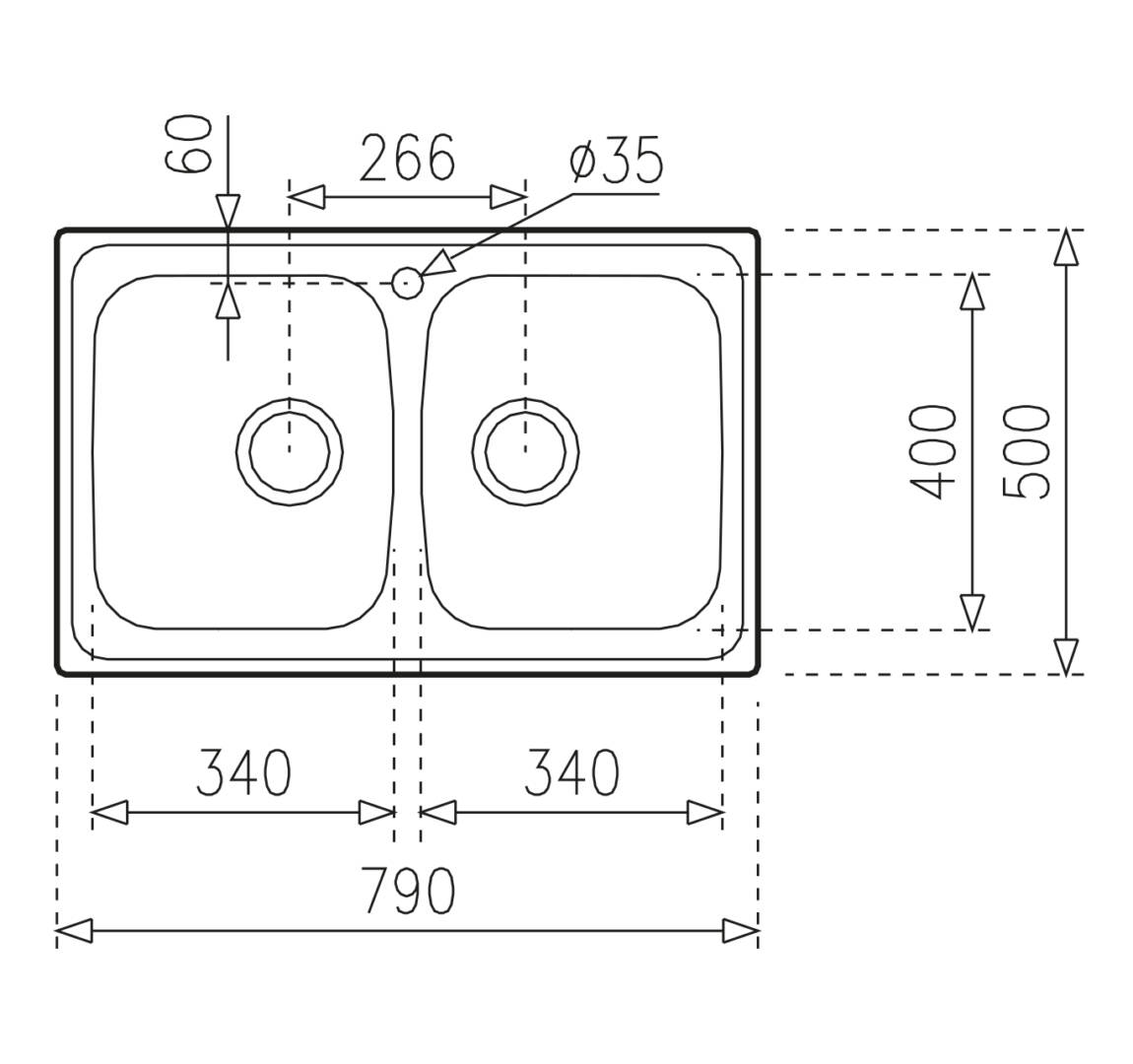Иноксова мивка за вграждане, микролен, за шкаф със светъл отвор 80 см