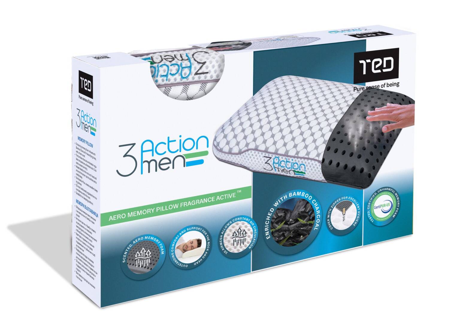 Представяме ти иновативно решение за твоя спокоен и здравословен сън. Възглавницата Action Man Aero Memory е специално проектирана с мемори пяна от ново поколение, третирана с активен въглен от бамбук, който спомага за регулирането на телесната температурата, елиминира миризмите и абсорбира излишната влага.